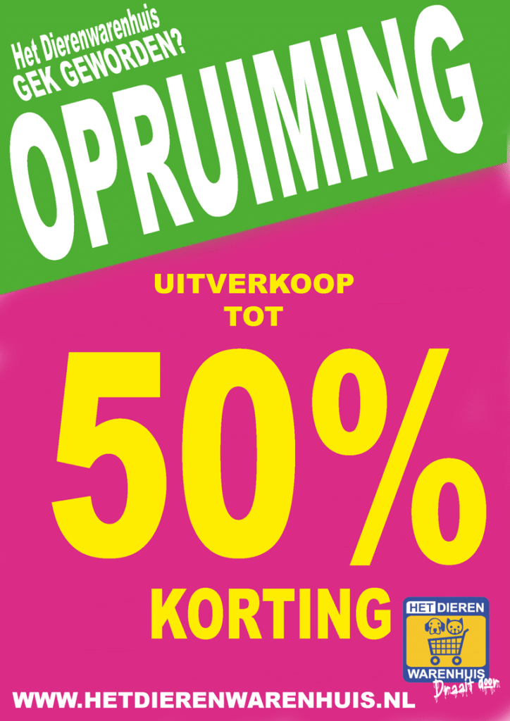 Het Dierenwarenhuis draait door! Nee, we zijn niet gek geworden maar gaan nog een heel jaar knallen met aanbiedingen, acties en opruimingen. Tot het einde van dit jaar in onze winkel bijvoorbeeld: 10% korting op alle manden en kussens, shampoos, kammen en borstels, riemen, tuigen en lijnen, benches en voerbakken, kattenbakken en schepjes, verlichting en reflectie…
