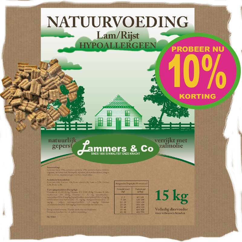 Lam/Rijst is een hypo-allergene geperste brok obv lam met 20% eiwit / 10% vet.